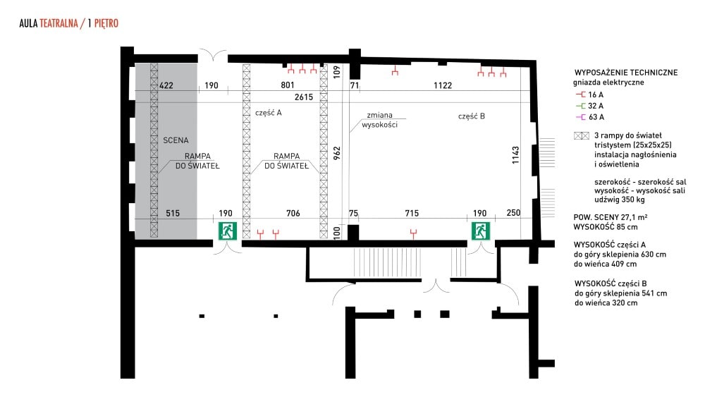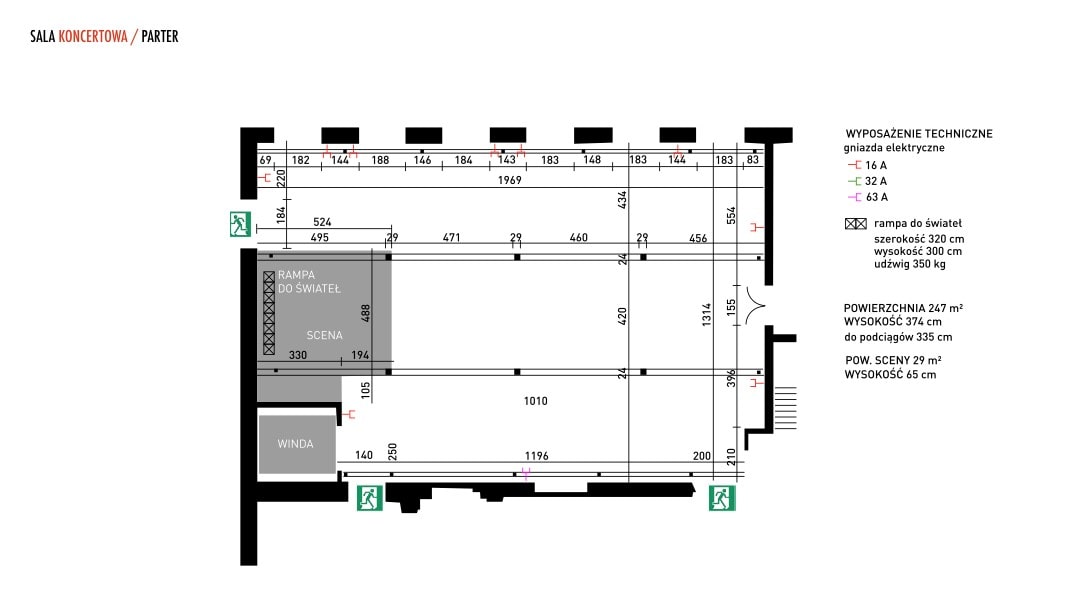 • wysokość (od sceny do sklepienia) / 5,5 m